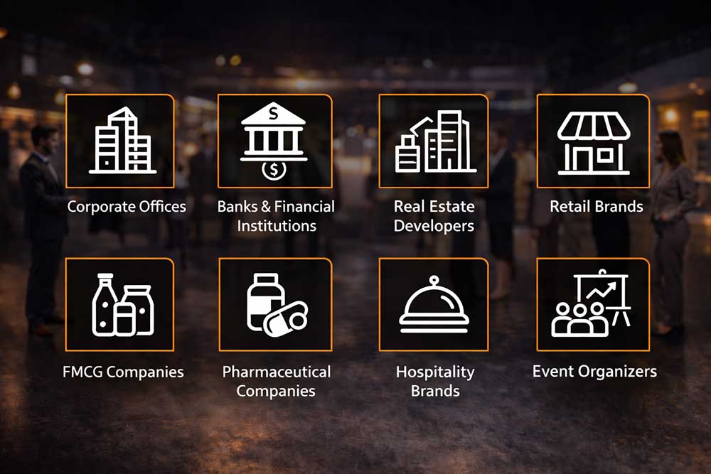 We work with corporations, retail brands, real estate developers, banks, startups, and event organizers to deliver branding solutions that are practical, consistent, and built for real business impact.